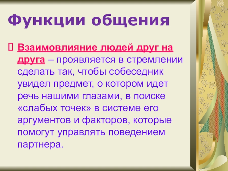 Взаимовлияние людей друг на друга – проявляется в стремлении сделать