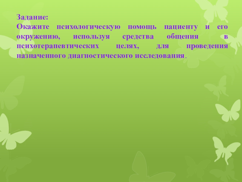Окажите психологическую помощь пациенту и его окружению, используя средства общения в