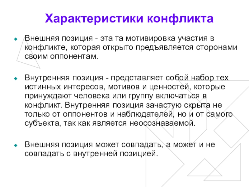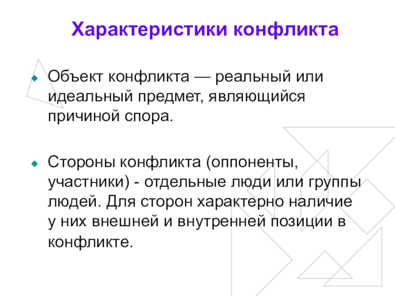 Слайд 13Характеристики конфликта