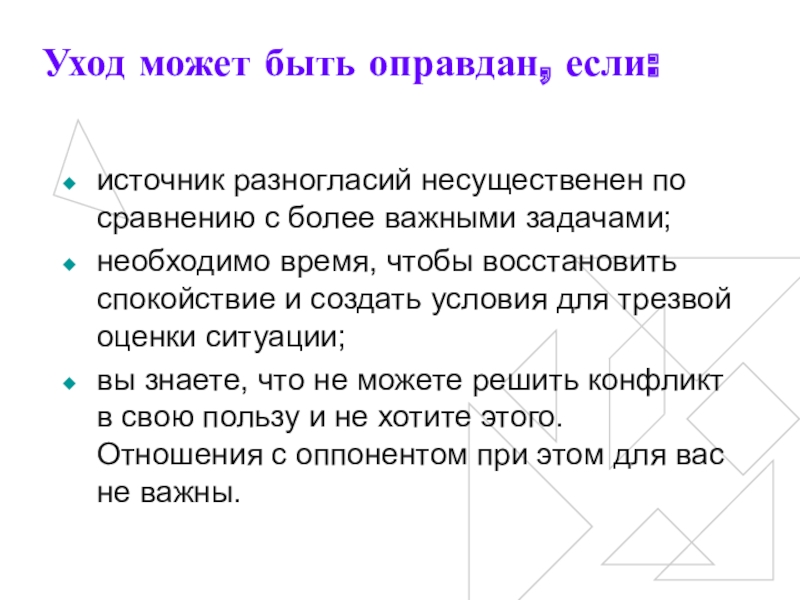 Слайд 20Уход может быть оправдан, если: