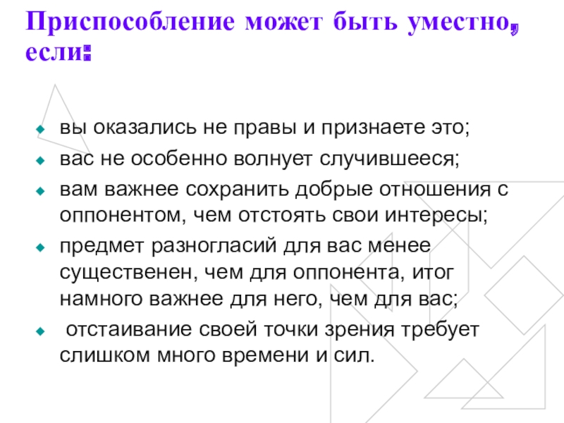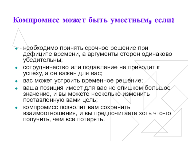 Слайд 26Компромисс может быть уместным, если: