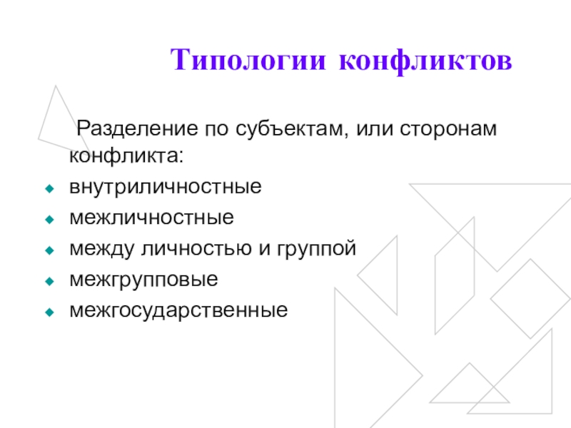 Слайд 11Типологии конфликтов