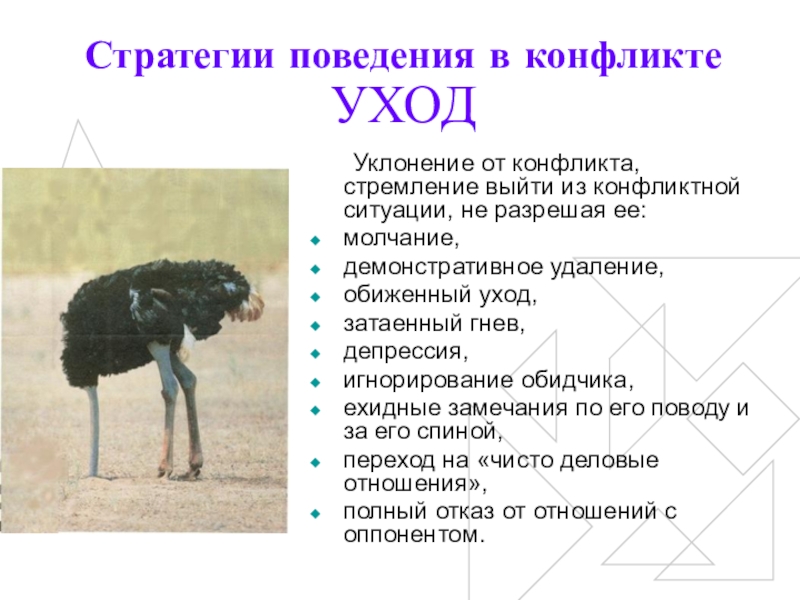 Уклонение от конфликта, стремление выйти из конфликтной ситуации,