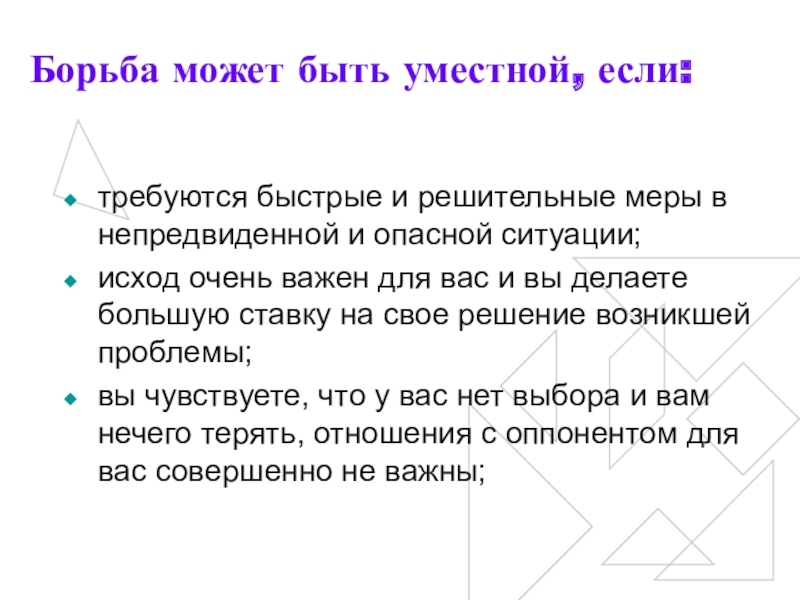 Слайд 24Борьба может быть уместной, если: