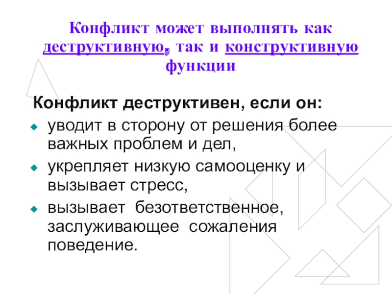 Слайд 17Конфликт может выполнять как деструктивную, так и конструктивную функции
