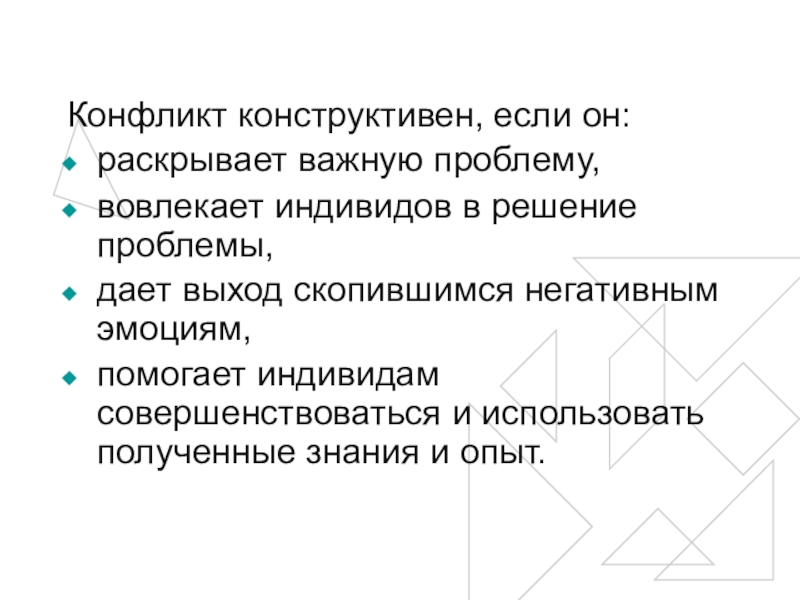 Слайд 18Конфликт конструктивен, если он: