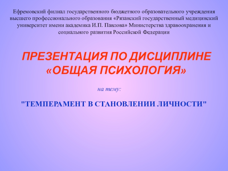 "ТЕМПЕРАМЕНТ В СТАНОВЛЕНИИ ЛИЧНОСТИ"
