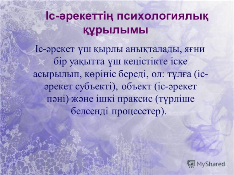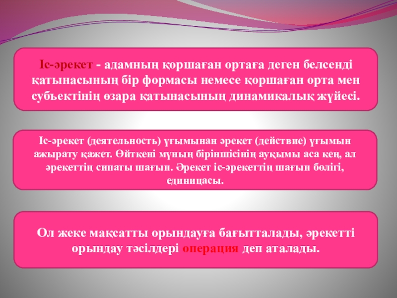 Ол жеке мақсатты орындауға бағытталады, әрекетті орындау тәсілдері операция деп аталады.
