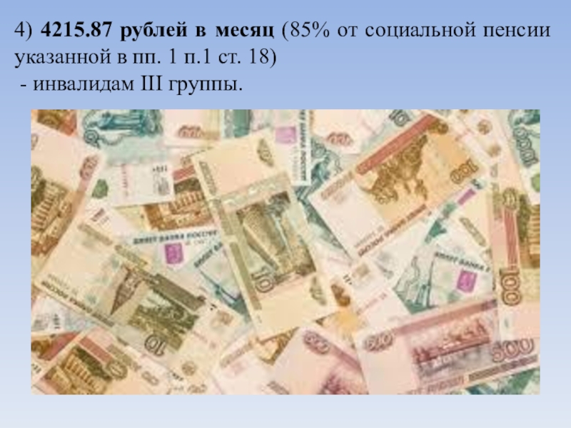 Слайд 164) 4215.87 рублей в месяц (85% от социальной пенсии указанной в
