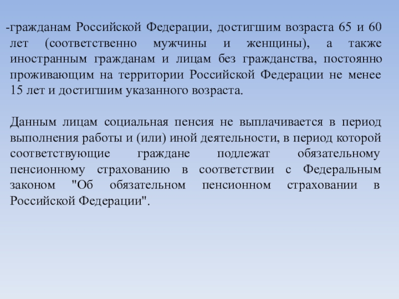 Слайд 11гражданам Российской Федерации, достигшим возраста 65 и 60 лет (соответственно мужчины