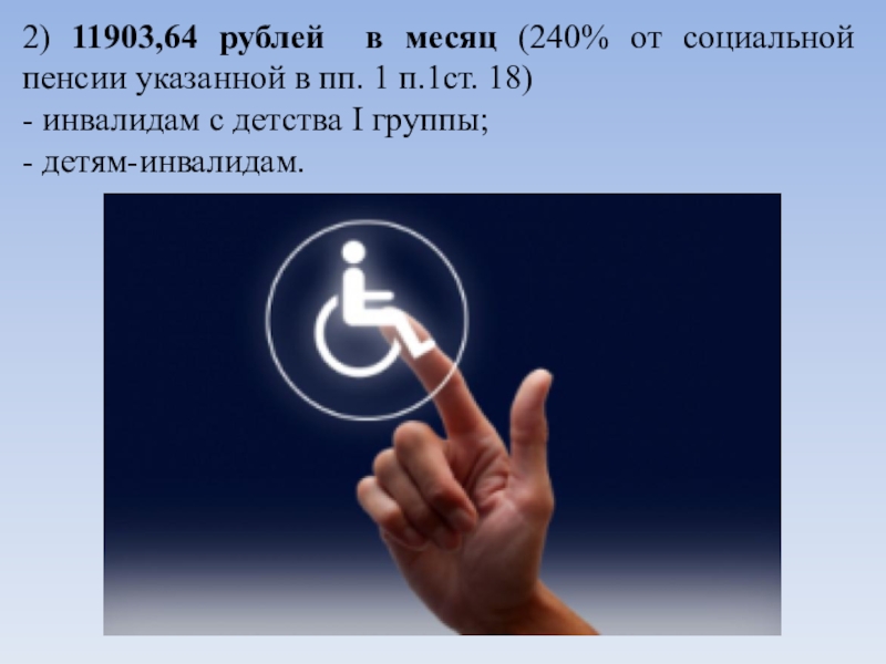 Слайд 142) 11903,64 рублей в месяц (240% от социальной пенсии указанной в