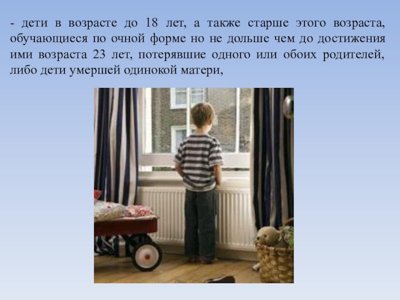 Слайд 5- дети в возрасте до 18 лет, а также старше этого