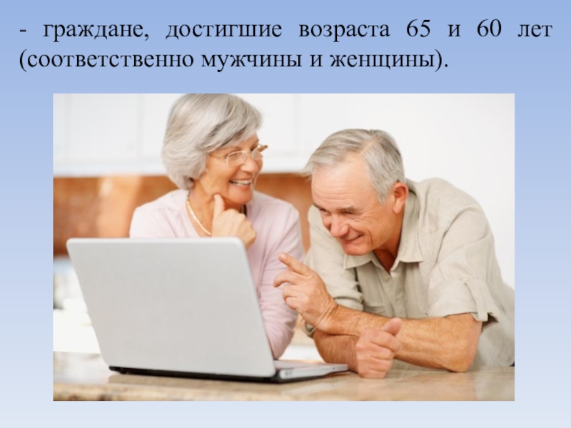 Слайд 7- граждане, достигшие возраста 65 и 60 лет (соответственно мужчины и