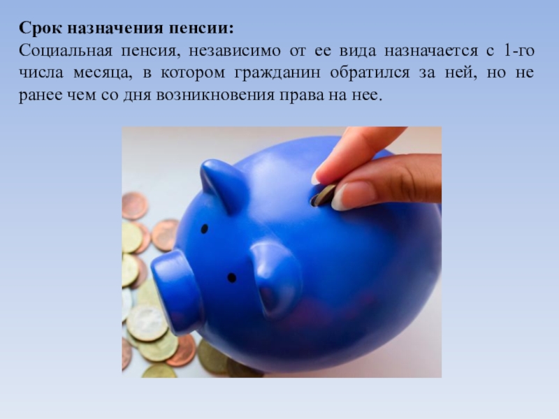 Слайд 21Продолжительность выплаты социальной пенсии: