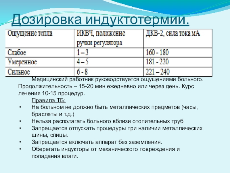 Запрещается отпускать процедуры при наличии металлических шины, спицы.
