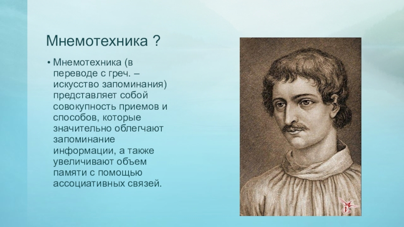 совокупность приемов и способов, которые значительно облегчают запоминание информации, а также увеличивают объем памяти с помощью ассоциативных связей.