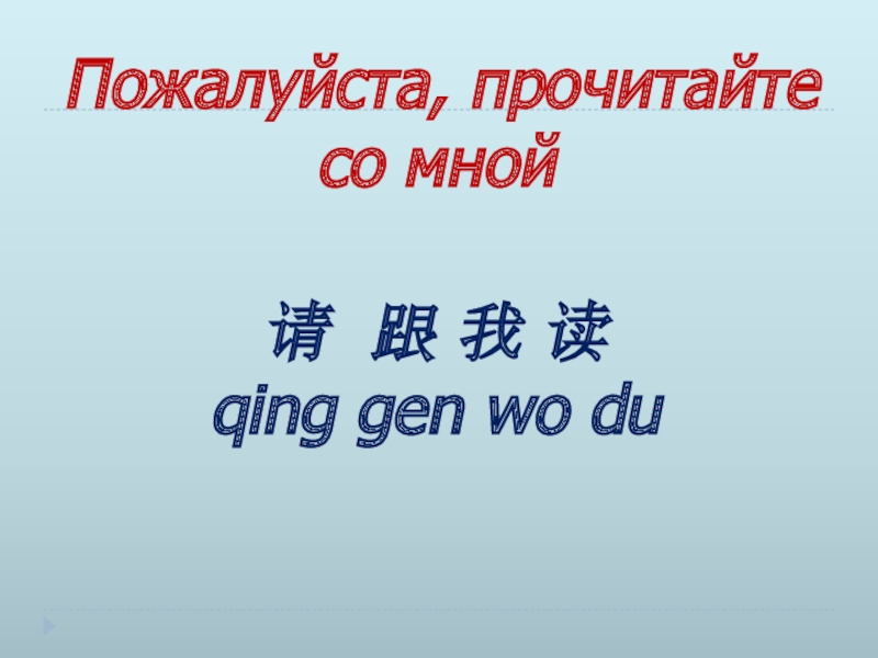 Пожалуйста, прочитайте со мной请 跟 我 读 qing gen wo du