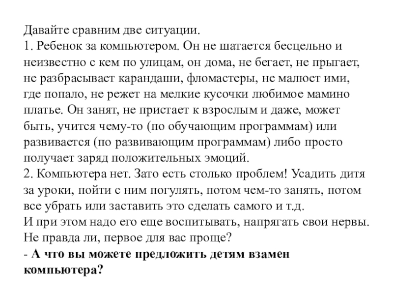 1. Ребенок за компьютером. Он не шатается бесцельно