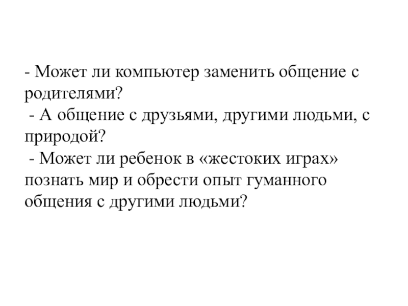 - Может ли ребенок в «жестоких играх» познать мир и обрести опыт гуманного общения с другими людьми?