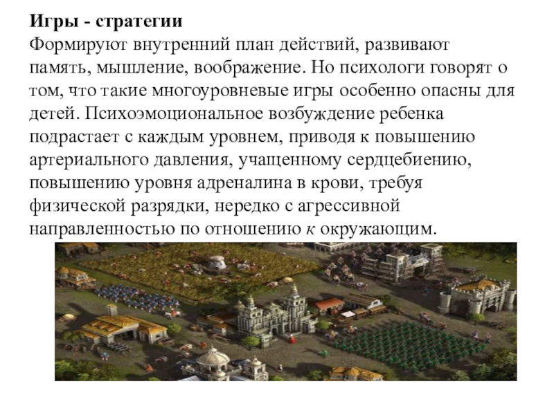 психологи говорят о том, что такие многоуровневые игры особенно опасны для детей. Психоэмоциональное возбуждение ребенка подрастает с каждым уровнем, приводя к повышению артериального давления, учащенному сердцебиению, повышению уровня адреналина в крови, требуя физической разрядки, нередко с агрессивной направленностью по отношению к окружающим.