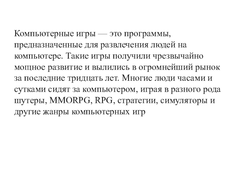 Компьютерные игры — это программы, предназначенные для развлечения людей на компьютере.