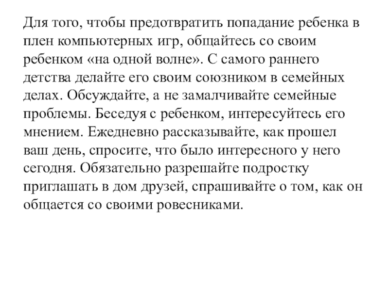 Для того, чтобы предотвратить попадание ребенка в плен компьютерных игр, общайтесь