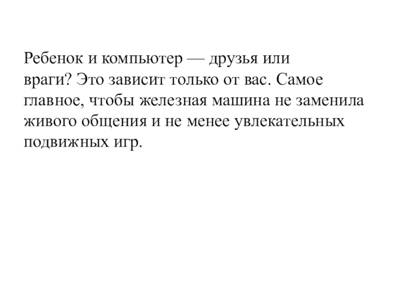 Самое главное, чтобы железная машина не заменила живого общения и не менее увлекательных подвижных игр.