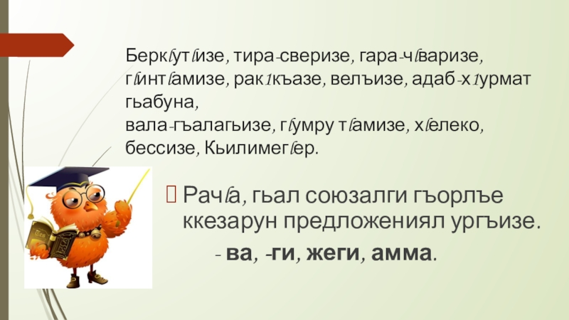 Мисал: Дун торгlо хlазе вачlинчlо, щай абуни школалде кватlулев вукlана