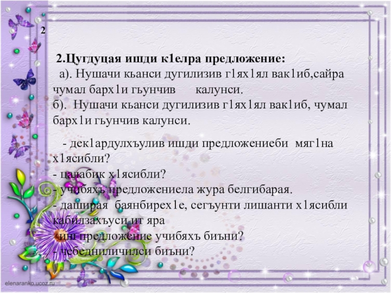 - учибяхъ предложениелизиб чебедиб предложение чиди мерличиб башара?