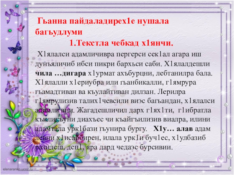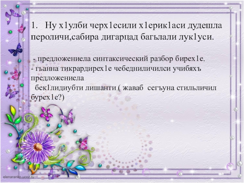 Слайд 91. Ну х1улби черх1есили х1ерик1аси дудешла пероличи,сабира дигарцад багьлали лук1уси.