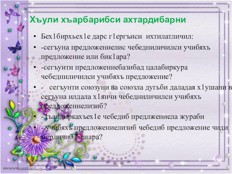 - сегъунти союзуни ва союзла дугьби даладая х1ушани ва сегъуна илдала х1янчи чебедниличилси учибяхъ предложениелизиб?