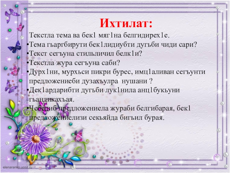 бек1лидиубти лишанти ( жаваб сегъуна стильличил бурех1е?)