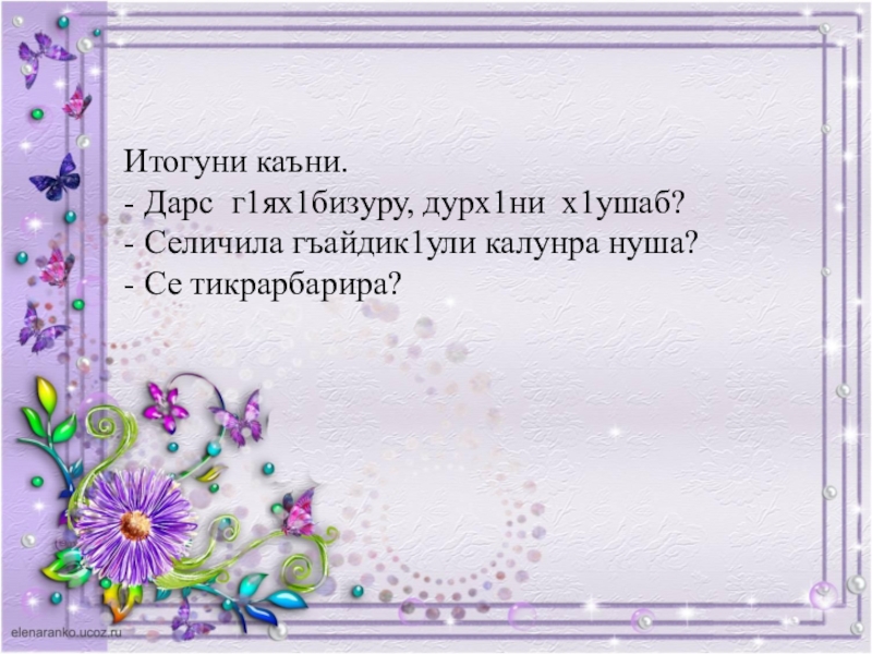 - Дарс г1ях1бизуру, дурх1ни х1ушаб?