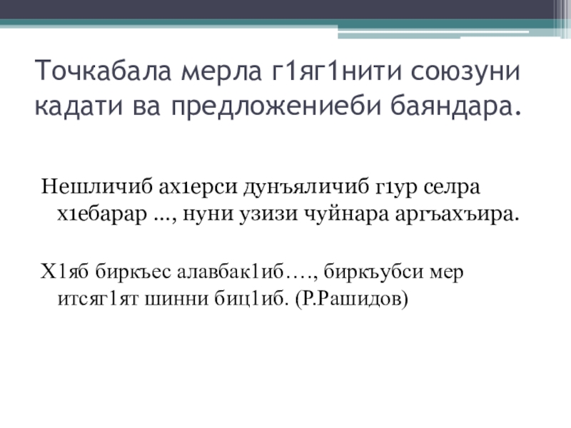 Слайд 10Точкабала мерла г1яг1нити союзуни кадати ва предложениеби баяндара.