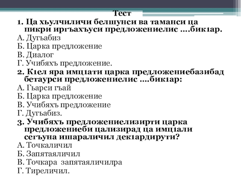 1. Ца хьулчиличи белшунси ва таманси ца пикри иргъахъуси предложениелис ….бик1ар.