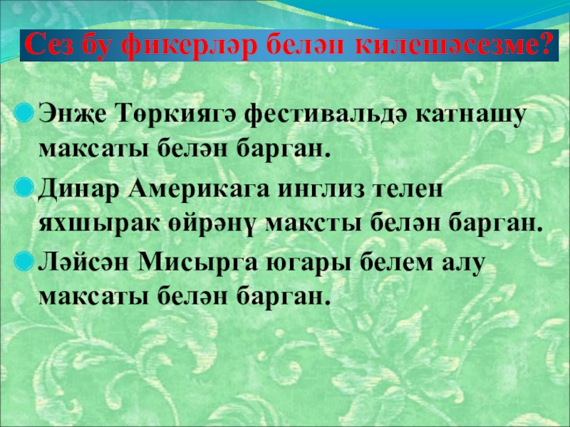Слайд 9Сез бу фикерләр белән килешәсезме?