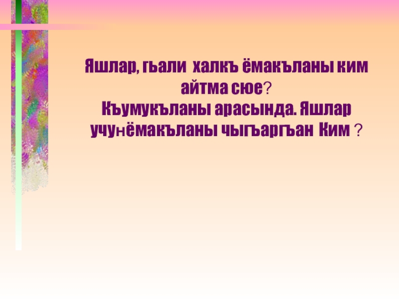 Къумукъланы арасында. Яшлар учунёмакъланы чыгъаргъан Ким ?