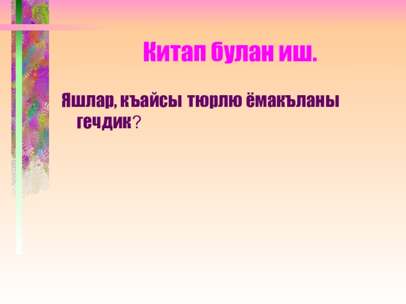 Китап булан иш.Яшлар, къайсы тюрлю ёмакъланы гечдик?