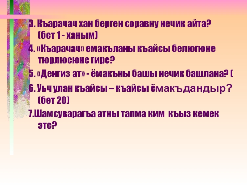 Слайд 133. Къарачач хан берген соравну нечик айта?