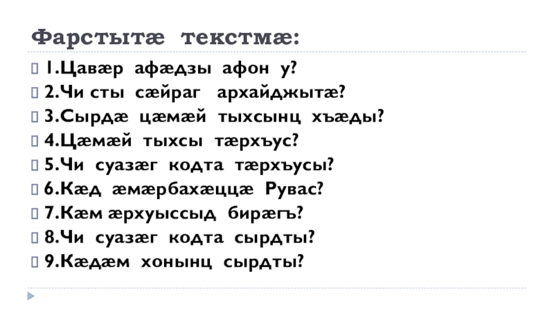 Слайд 6Фарстытæ текстмæ: