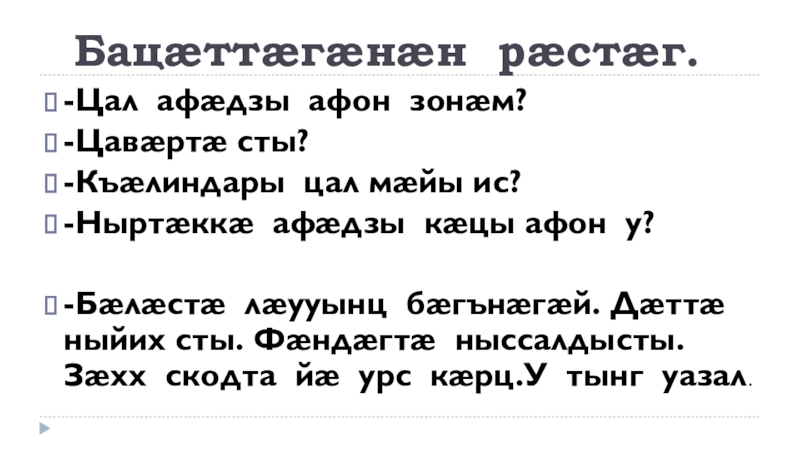 Слайд 3Бацæттæгæнæн рæстæг.
