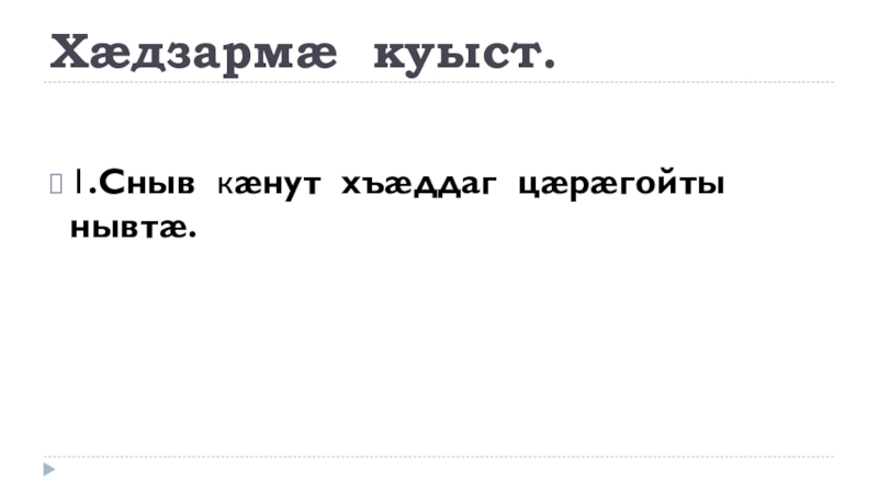 Слайд 10Ныхасы рæзтыл куыст (нывтæм гæсгæ).