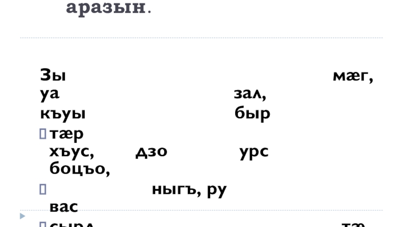 Слайд 12Уæнгтæй дзырд аразын.