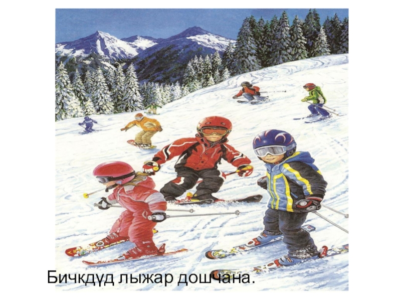 Слайд 8Бичкдүд лыжар дошчана.