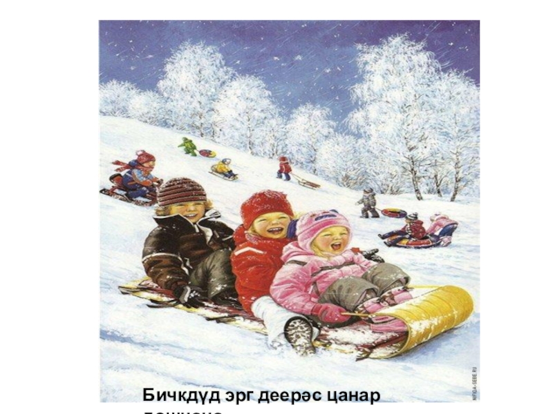 Слайд 4Бичкдүд эрг деерәс цанар дошчана.