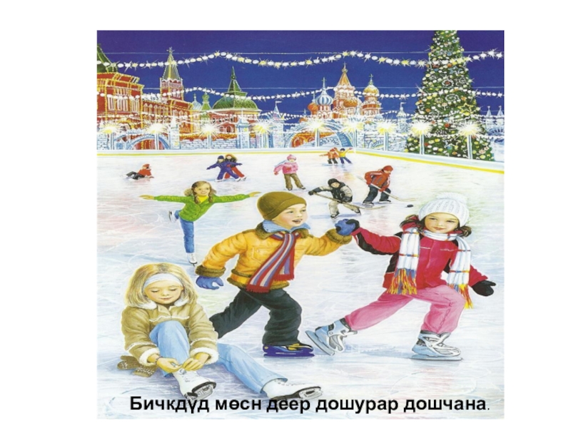Слайд 5Бичкдүд мөсн деер дошурар дошчана.