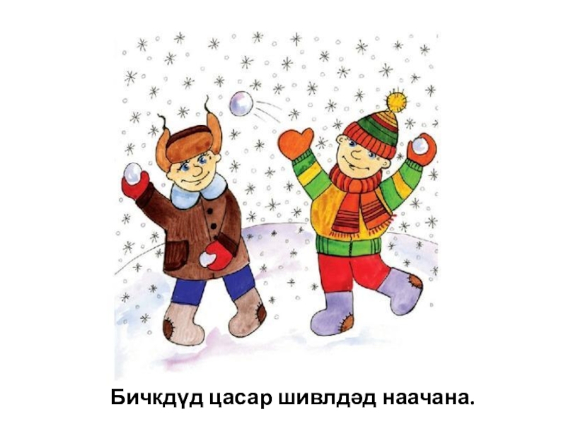 Слайд 7Бичкдүд цасар шивлдәд наачана.