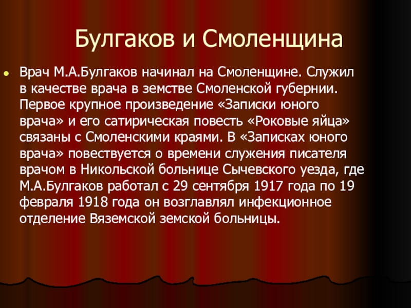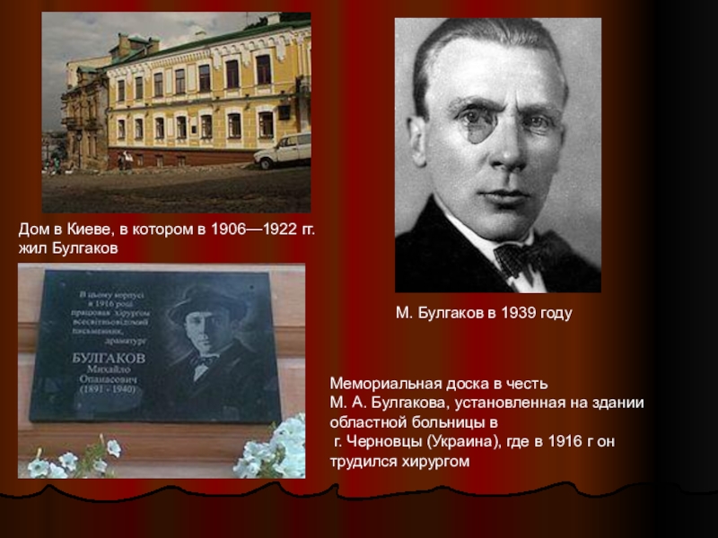 Мемориальная доска в честь М. А. Булгакова, установленная на здании областной больницы в