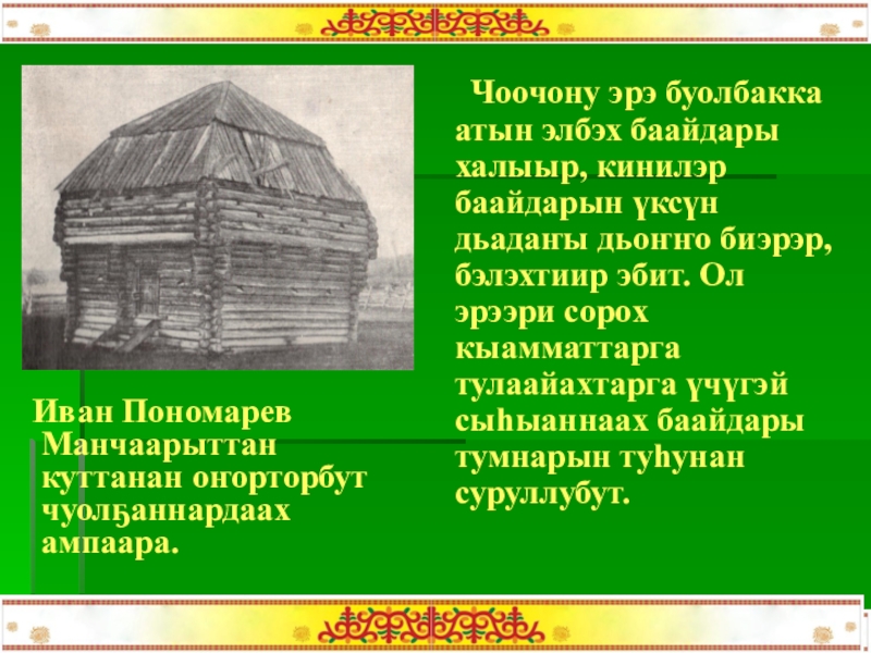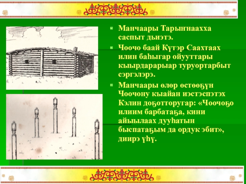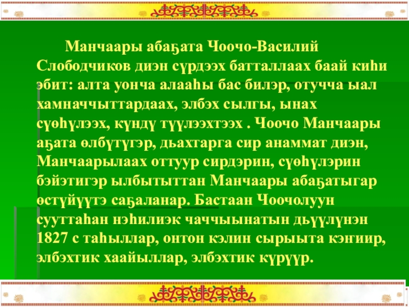 Слайд 11 Манчаары абаҕата Чоочо-Василий Слободчиков диэн