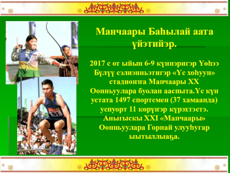 Слайд 32Манчаары Баһылай аата үйэтийэр.